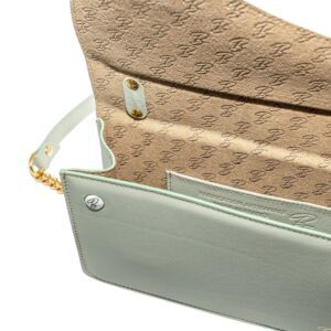Fermoir invisible, ligne inspirée des motifs Art Déco, porté épaule où croisé, en pochette, porcelaine insérée discrètement, notre ADN.